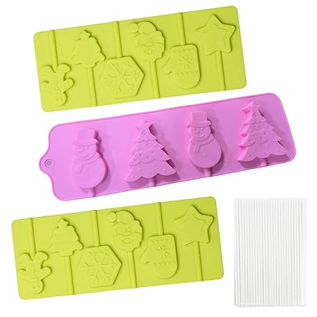 Christmas Snowflake Trees Silicone Lollipop Candy Snowman Molds with 20 Sticks, Homemade Cake Chocolate Sucker Molds for Holiday Baking DIY Party Accessories (2Pcs)