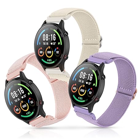 CHULN Pack of 3 nylon straps compatible with Xiaomi Mi Watch/Xiaomi Watch S1/Xiaomi Watch S1 Active/Xiaomi Watch S1 Pro, 22 mm adjustable elastic sports replacement straps for Xiaomi Mi Watch.
