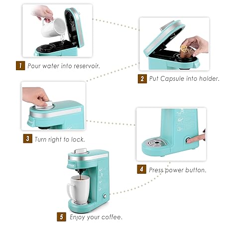 Thông tin sản phẩm CHULUX Mini Coffee Maker for K Capsule, Single Serve Coffee Maker for One Cup Americano, Lightweight Pod Coffee Machine, Cyan