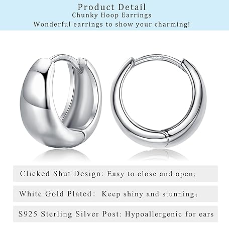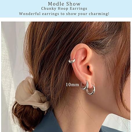 Sản phẩm Chunky Hoop Earrings, Sterling Silver Hoop Earrings for Women?Small Hypoallergenic Hinged Silver Hoops Earrings Jewellery for Girls Men?Available Size in 10mm đang được bán với giá ưu đãi là $15.7396 tại nước Anh.