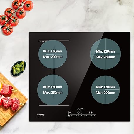 Sản phẩm CIARRA CBBIH4BF 7200W Built-in Induction Hob 4 Zones with Boost Function and 1 Flex Zone Touch Control Ceramic Glass 9 Power Levels Function Child Safety Lock Black đang được bán với giá ưu đãi là $274.9089 tại nước Anh.