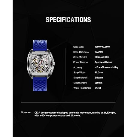 Sản phẩm CIGA Design Automatic Mechanical Watch - Z Series Skeleton Stainless Steel Analog Wristwatch Tonneau Sapphire Crystal for Men Women đang được bán với giá ưu đãi là $381.8488 tại nước Anh.
