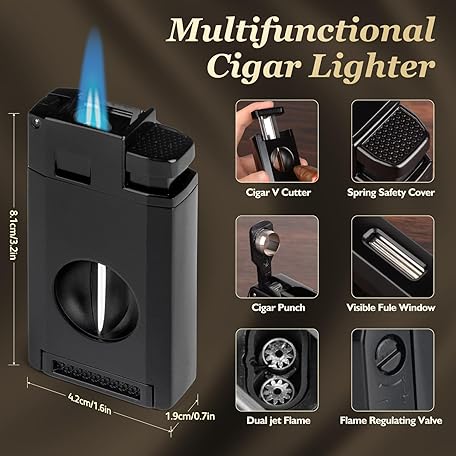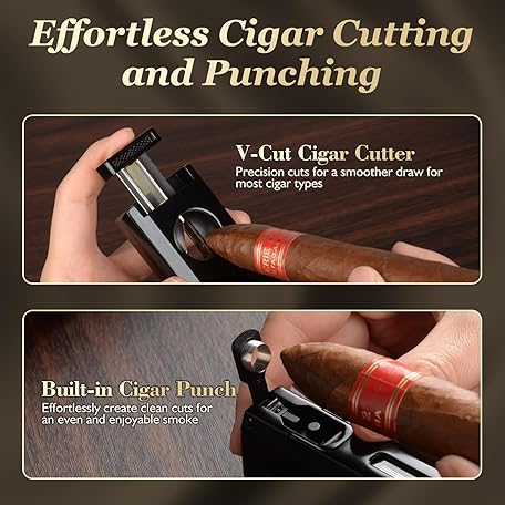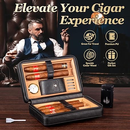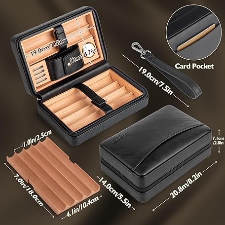 Thông tin sản phẩm Cigar Humidor, Leather Cedar Wood Cigar Case, Travel Cigar Case with Hygrometer & Humidifier, 3-in-1 Cigar Lighter | Portable Travel Cigar Humidor, Cigar Accessories Set for Men (Black)