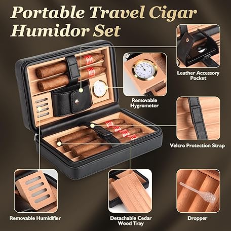 Sản phẩm Cigar Humidor, Leather Cedar Wood Cigar Case, Travel Cigar Case with Hygrometer & Humidifier, 3-in-1 Cigar Lighter | Portable Travel Cigar Humidor, Cigar Accessories Set for Men (Black) đang được bán với giá ưu đãi là $57.3776 tại nước Anh.