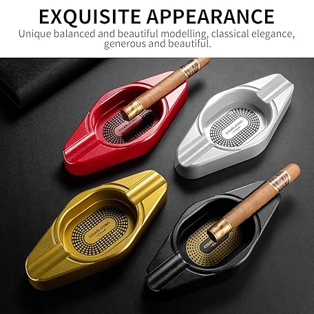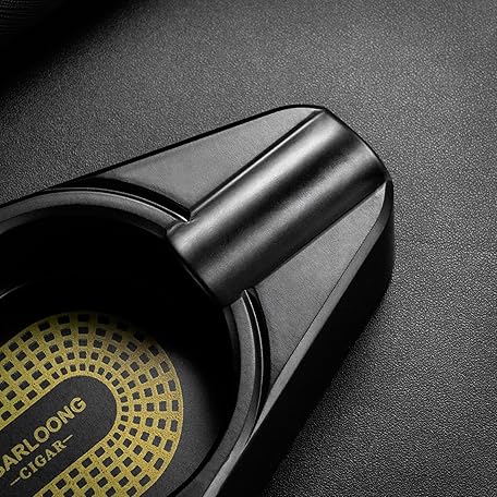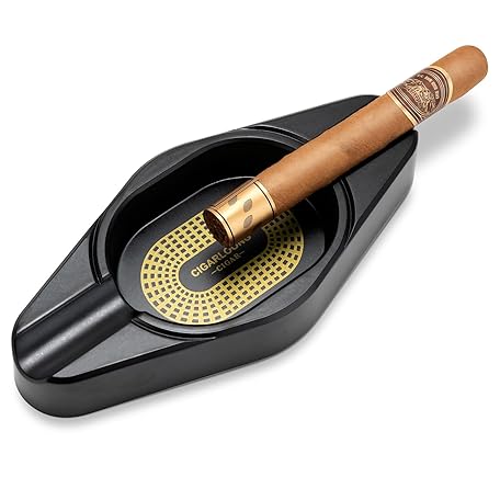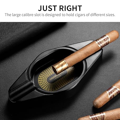 CIGARLOONG Cigar Ashtray Holds 2 Cigars Resin Desktop Cigar Holder Ash Tray for Outdoor (Black)