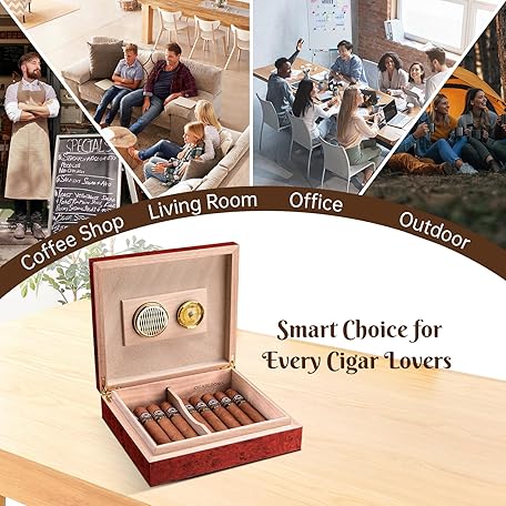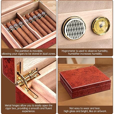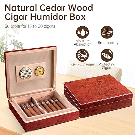 Sản phẩm CIGARLOONG Cigar Humidor with Hygrometer and Humidifier Travel Cedar Wood Cherry Desktop Box Holds up to 15-20 Cigars đang được bán với giá ưu đãi là $34.7928 tại nước Anh.