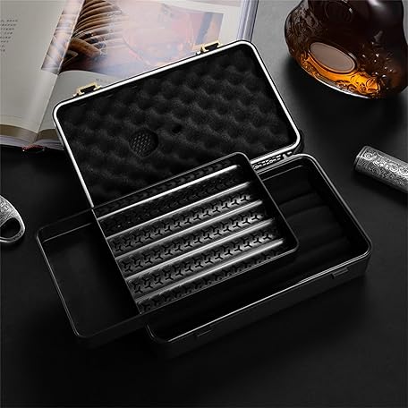 Sản phẩm CIGARLOONG Cigar Travel Humidor with Humidifier and Hygrometer,Cigar Case with 2 Cigar Cutters, Holds up to 10 Cigars (black) đang được bán với giá ưu đãi là $33.7464 tại nước Anh.