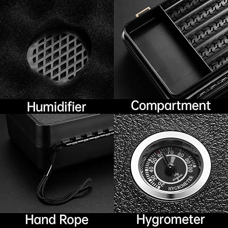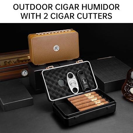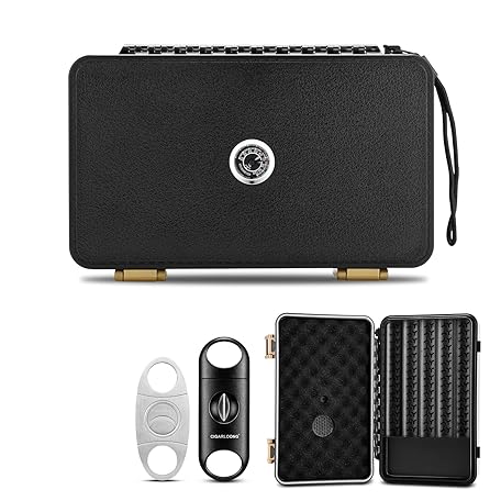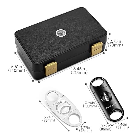 Thông tin sản phẩm CIGARLOONG Cigar Travel Humidor with Humidifier and Hygrometer,Cigar Case with 2 Cigar Cutters, Holds up to 10 Cigars (black)