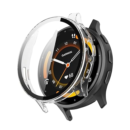 CiimWaa Hard PC Case Compatible for Garmin Venu 3 with Tempered Glass Screen Protector, Shockproof Scratch-Resistant Full Coverage Protective Case for Garmin Venu 3, Transparent