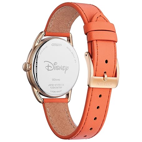 Thông tin sản phẩm Citizen Eco-Drive Disney Women's Watch, Stainless Steel with Leather Strap, Minnie Mouse, Coral Orange, Rose Gold-Tone and Silver-White