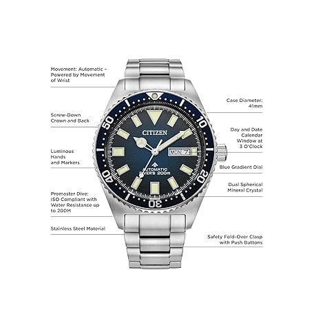 Thông tin sản phẩm Citizen Men's Promaster Dive Automatic 3-Hand Stainless Steel Watch, Day Date, Luminous, 41mm