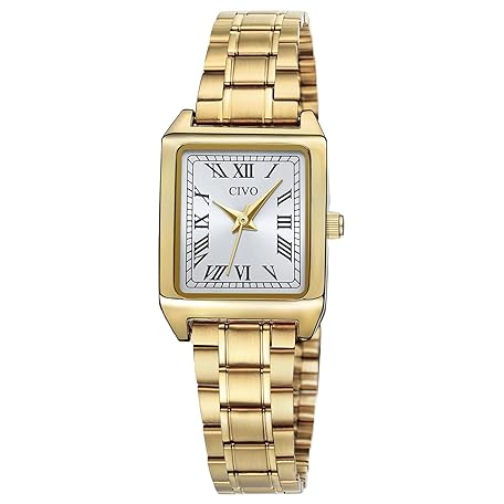 CIVO Fashion Rectangle Watches for Women: Gold Stainless Steel Waterproof Quartz Design for Business and Daily Commute