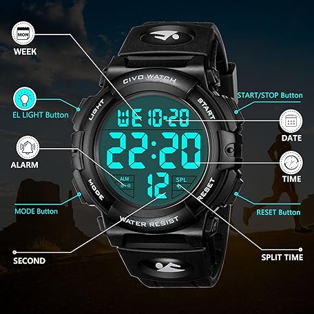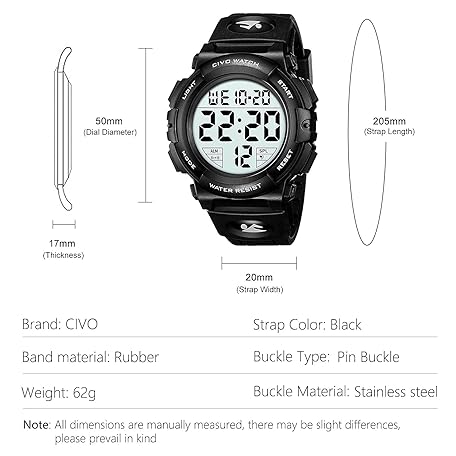 Sản phẩm CIVO Mens Digital Sports Watches Military Big Numbers 50M Waterproof Large Face Army Wrist Watch LED Back Light Casual Watch for Men Rubber đang được bán với giá ưu đãi là $27.25 tại nước Anh.