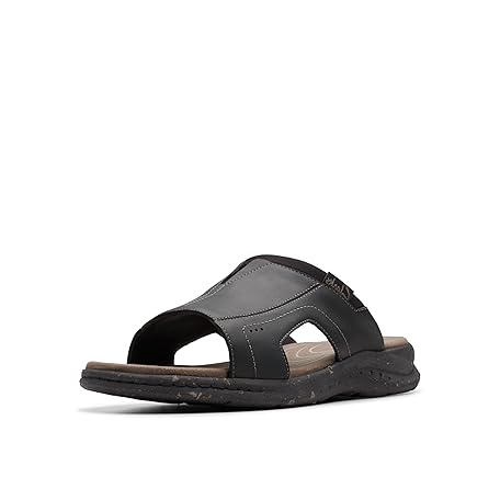 Clarks Men's Walkford Band Slide Sandal, Black Leather, 6.5 UK