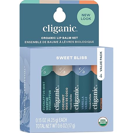 Cliganic - Organic Lip Balm, Pack of 4 - Sweet Bliss