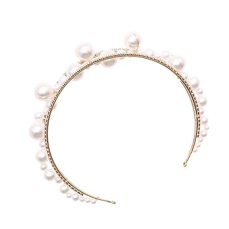 CLISPEED Handmade Gold Rhinestone Pearl Headband Lightweight Bridal Headwear for Wedding Birthday Party Elegant Faux Pearls Skin-friendly Accessory