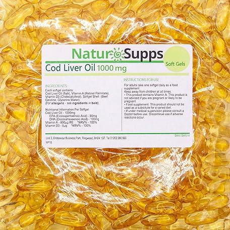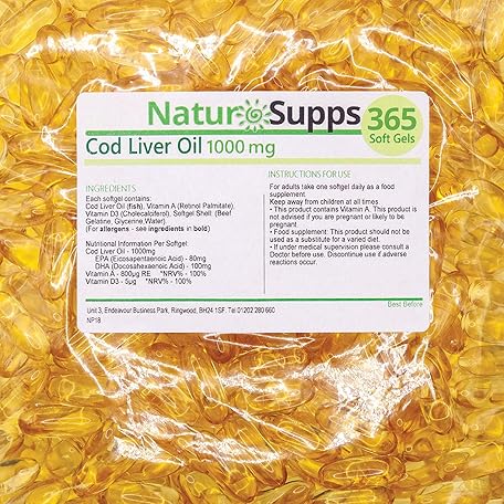 Sản phẩm Cod Liver Oil Capsules High Strength 1000mg, 365 Omega 3 Softgels, EPA DHA Vitamin A Vitamin D3, 1 Year Supply, Gluten Free, UK Made by Natur Supps đang được bán với giá ưu đãi là $23.4786 tại nước Anh.