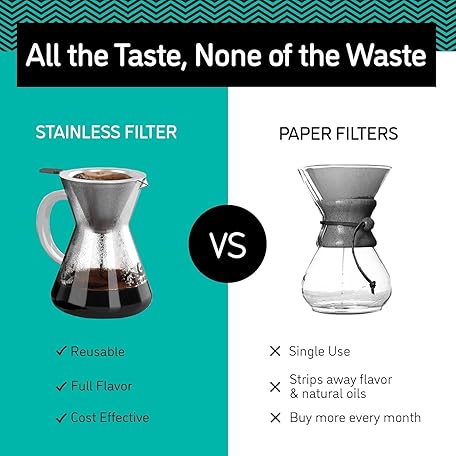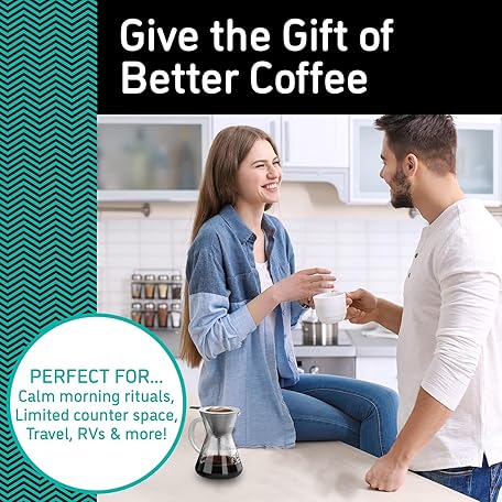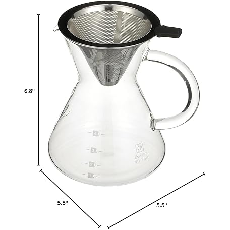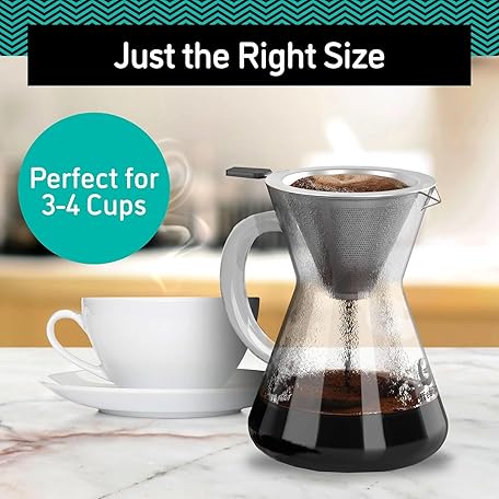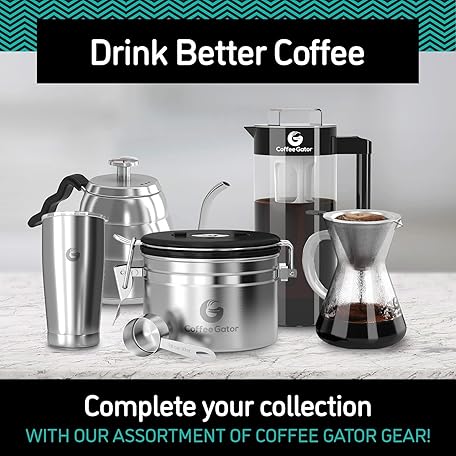 Thông tin sản phẩm Coffee Gator Pour Over Coffee Maker - 14 oz/400 ml, High Heat Borosilicate Glass Carafe with Reusable Stainless Steel Filter, Drip Coffee Brewer Set, Clear
