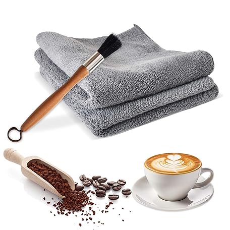 Coffee Grinder Brush Cleaning Brushes, Espresso Cleaner Brushes with Wooden Handle, Coffee Machine Brush Cleaner & 2 Microfiber Cleaning Cloth for Barista Home Kitchen Barista Accessories (Brown)