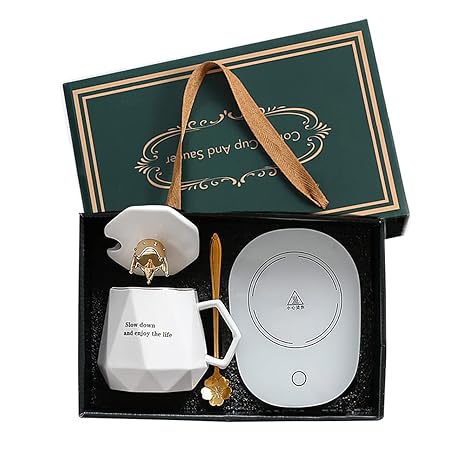 Coffee Warmer for Desk, with Mug Set. Cup Warmer Tea Warmer, Electric Beverage Warmer, Drink Warmer for Cocoa, Tea, Milk Gifts for Father's Day. Mr and Mrs Wedding Gift, Engagement Gift(White)
