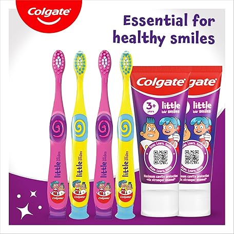 Thông tin sản phẩm COLGATE Kids Toothpaste Set 3+ Years - 2x Little Kids' Smiles Toothpaste 50ml, 4x Toothbrushes 3-5 Years, 2 Minute Timer - 4x Stronger Enamel, Super Soft Bristles