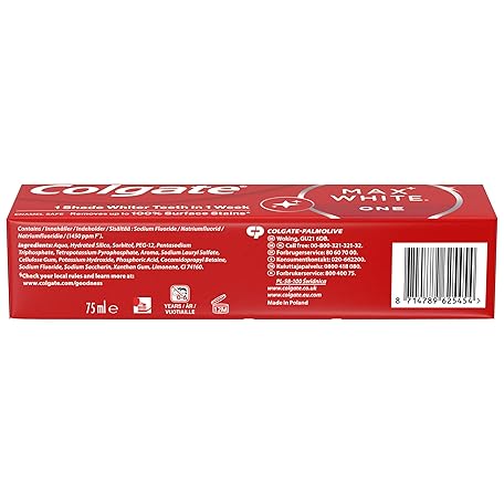 Sản phẩm Colgate Max White One Toothpaste 3 X 75ml - Teeth Whitening Toothpaste - Clinically Proven Formula - Removes up to 100% of Surface Stains - Contains Whitening Accelerators - 1 Shade Whiter in 1 Week đang được bán với giá ưu đãi là $10.8346 tại nước Anh.