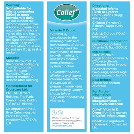 Sản phẩm Colief Vitamin D Drops, 20 ml đang được bán với giá ưu đãi là $14.2899 tại nước Anh.