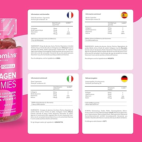 Thông tin sản phẩm Collagen Gummies - Collagen Peptides with Hyaluronic Acid, Vitamin C & Biotin - Collagen Supplements for Women & Men - More Convenient Than Collagen Powder - 60 Marine Collagen Gummies - Novomins