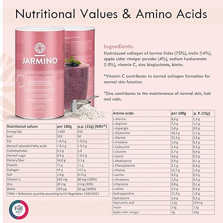 Thương hiệu JARMINO là cái tên nổi tiếng được rất nhiều khách hàng trên thế giới chọn lựa. Với kiểu dáng đẹp mắt, sang trọng, sản phẩm Collagen peptides + hyaluronic Acid, Vitamin C, biotin, zinc | Beauty Collagen Supplements for Women | Collagen Complex for Hair, Skin and Nails | 450g (30 portions) là sự lựa chọn hoàn hảo nếu bạn đang tìm mua một món cho riêng mình.