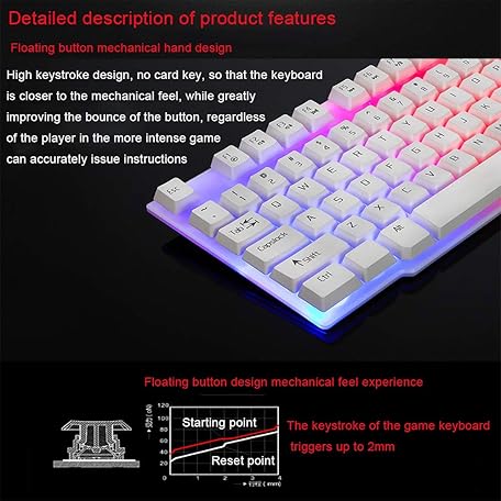 Thông tin sản phẩm Colorful Crack LED Illuminated Backlit USB Wired PC Rainbow Gaming Keyboard, Ultra-Slim Rainbow LED Backlit Keyboard for Desktop, Computer (White)