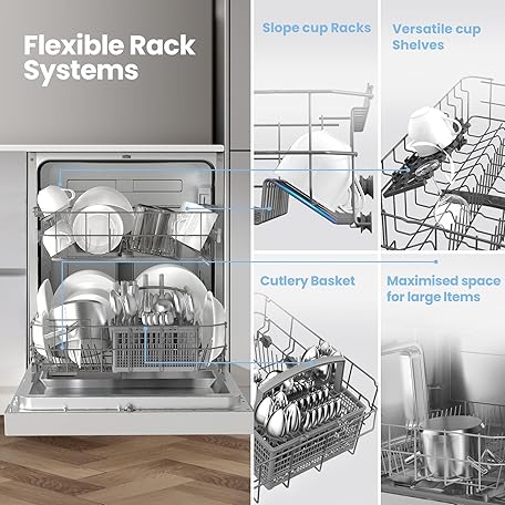 Thông tin sản phẩm COMFEE' Freestanding Dishwasher CDWPF1201PW-UK 60cm Width, Full Size Dishwasher with 12 place settings, Quick Wash, Hygiene Wash, Delay Start, Half Load - White