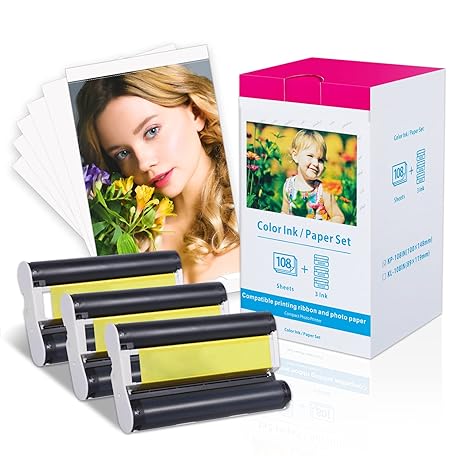 Thông tin sản phẩm Compatible Canon Selphy CP1500 Ink and Paper for Selphy Photo Printer CP1500 CP1300 CP1200 CP910 CP800 CP780 4x6 inch 10x15cm, KP-108IN 3xKP-36IP Photo Paper 108 Sheets and 3 Colour Ink Cassette