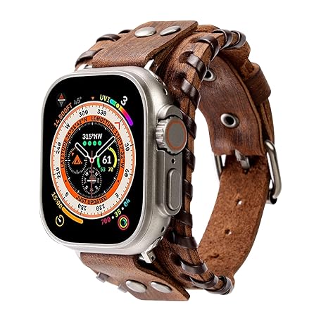 Compatible with Apple Watch Band 49mm 45mm 44mm 42mm 41mm 40mm 38mm iWatch Ultra Series 8/7/SE/6/5/4/3/2/1 for Men Women, Leather Handmade Cuff Bracelet Woven Vintage Strap