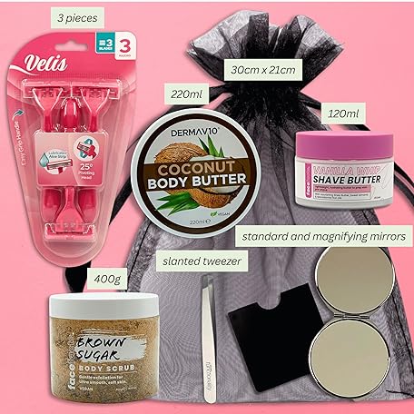 Sản phẩm Complete Hair Remover & Shaving Routine Bundle for Silky Skin – Pre-Shave Exfoliating Scrub, Shave Butter, Body Butter, Razors, Tweezers & Mirror for Legs & Arms đang được bán với giá ưu đãi là $29.2229 tại nước Anh.