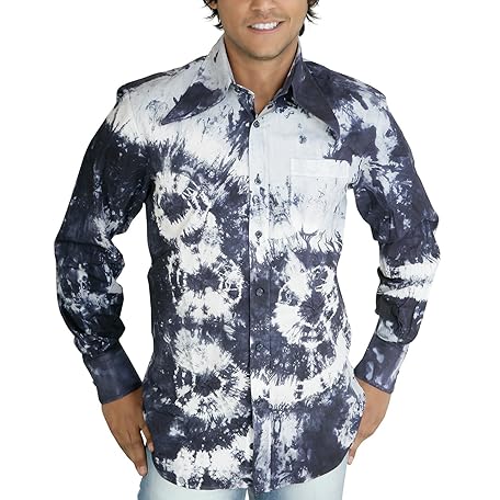 Comycom Blue Batik Men's Long-Sleeved Shirt in 70s Hippie Look - Batik Pattern Casual Shirt in Retro Style with Large Collar, blue white, M