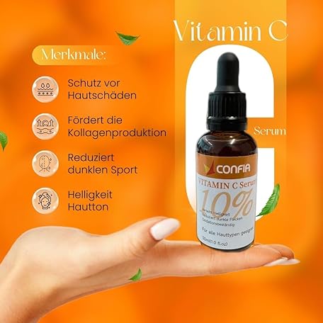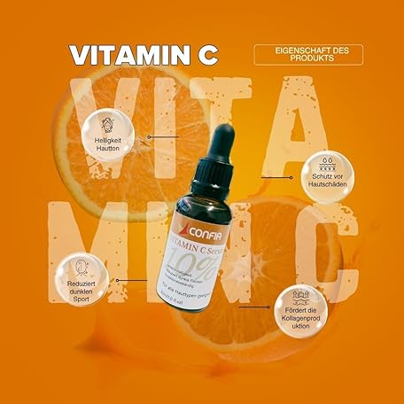 Thông tin sản phẩm Confia Vitamin C Serum 10%, 30 ml, Face Serum for All Skin Types, Anti-Ageing and Brightening, with Orange Essential Oil