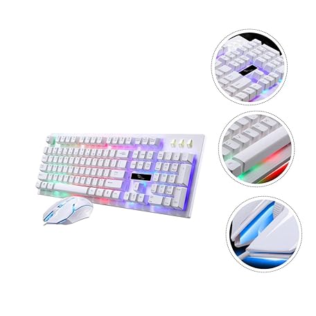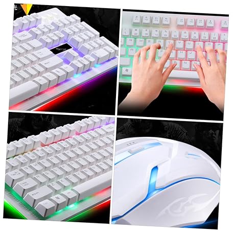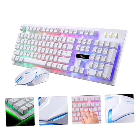 • CONGARTENO Wired Usb Gaming Mechanical Keyboard and Luminous Mouse Set for Pc, White Backlit Suspension Keys Mechanical Feel for Gamers and Office Use