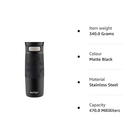 Contigo Transit Autoseal Travel Mug, Stainless Steel Thermal Mug, Vacuum Flask, Leakproof Tumbler, Coffee Mug with BPA Free Easy-Clean Lid, Matte Black, 470 ml