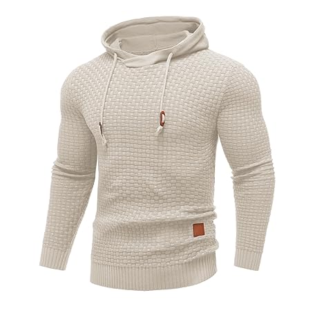 COOFANDY Men's Knitted Hoodies Hipster Casual Hooded Sweatshirt Long Sleeve Pullover Sweaters Slim Fit Polo Hoodie, Khaki, Small