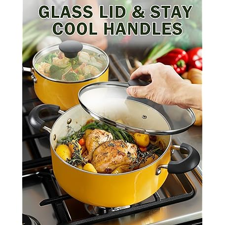 Thông tin sản phẩm Cook N Home Pots and Pans Set Nonstick, 10-Piece Ceramic Kitchen Cookware Sets, Nonstick Cooking Set with Saucepans, Frying Pans, Dutch Oven Pot with Lids, Yellow