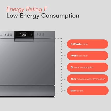 Sản phẩm Cookology CTTD8SL-b Mini Counter Top Dishwasher in Silver - 8 Place Setting Capacity - Table Top - Compact Design - 7 Wash Cycles - ECO Friendly Mode đang được bán với giá ưu đãi là $391.7133 tại nước Anh.