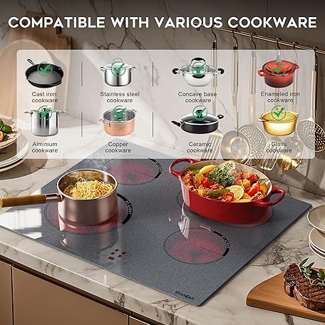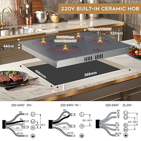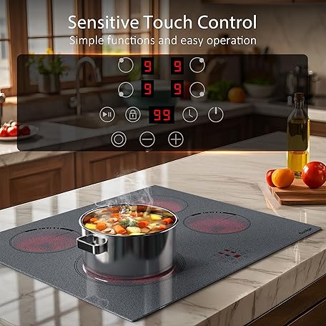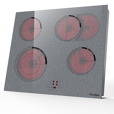Thông tin sản phẩm Cooksir Ceramic Hob 4 Zones, 60CM Built-in Electric Hob, with Oval and Dual Expandable Zone, Grey Granular Texture Ceramic Glass, Sensor Touch, Safety Lock, 99-Min Timer, Hard Wired, No Plug, 230V