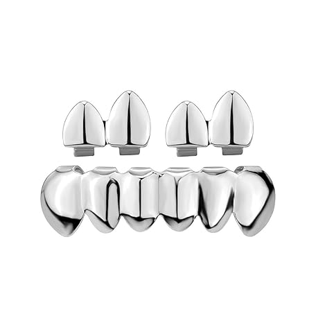 Cool Hip Hop Tooth Grillz Set Alloy Tooth Cap Set Shiny Hip Hop Fashion Top and Bottom Grillz Adjustable Size