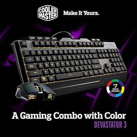 Thông tin sản phẩm Cooler Master Devastator 3 Gaming Keyboard & Mouse Combo - Membrane Switches with 7 Colour LED Backlighting, Dedicated Media Keys & Wrist Rest - MM110 Gaming Mouse - QWERTY UK Layout