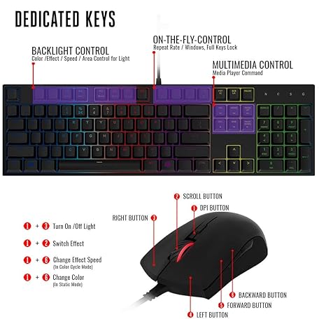 Thông tin sản phẩm Cooler Master SGB-3040-KKMF1-US MasterKeys Lite L Gaming Keyboard & Mouse Combo, 6 Zoned RGB LED Backlit, On The Fly (Renewed)