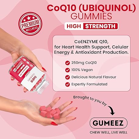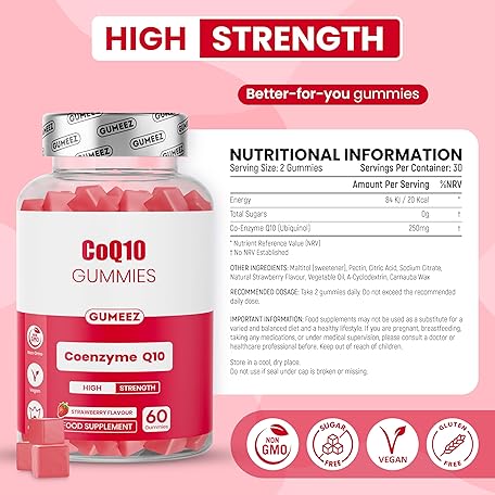 Thông tin sản phẩm CoQ10 Gummies 250mg – High Strength Ubiquinol Supplement for Heart Health, Energy & Antioxidant Support – Vegan CoEnzyme Q10 Gummies with Delicious Strawberry Flavour – 30 Day Supply