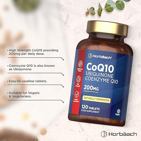 Sản phẩm CoQ10 Supplement 200mg | 120 Vegan Tablets | High Strength Naturally Fermented Ubiquinone Coenzyme Q10 | by Horbaach đang được bán với giá ưu đãi là $21.8327 tại nước Anh.