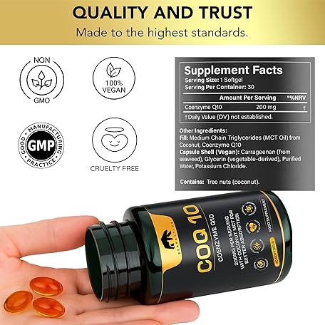 Sản phẩm CoQ10 Supplement 200mg Softgels - for Heart Health, Energy & Recovery - Powerful Q10 Coenzyme Ubiquinone – 30 Vegan Softgels with Coconut MCT Oil – Coenzyme Q10 High Strength đang được bán với giá ưu đãi là $14.5297 tại nước Anh.