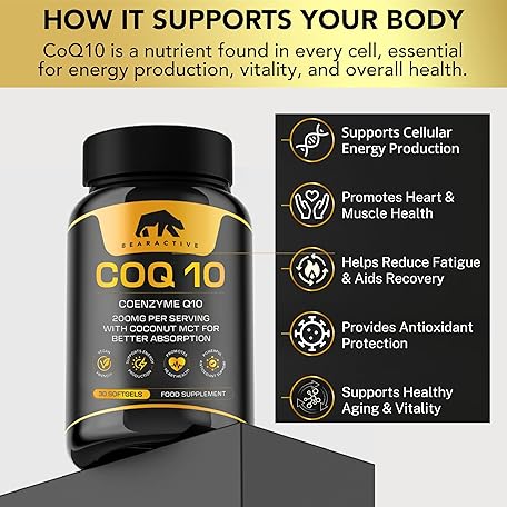 Thương hiệu Bearactive là cái tên nổi tiếng được rất nhiều khách hàng trên thế giới chọn lựa. Với kiểu dáng đẹp mắt, sang trọng, sản phẩm CoQ10 Supplement 200mg Softgels - for Heart Health, Energy & Recovery - Powerful Q10 Coenzyme Ubiquinone – 30 Vegan Softgels with Coconut MCT Oil – Coenzyme Q10 High Strength là sự lựa chọn hoàn hảo nếu bạn đang tìm mua một món cho riêng mình.