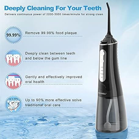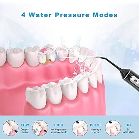 Sản phẩm Cordless Water Flosser, 4 Modes Professional Dental Oral Irrigator with 6 Jet Tips and 300ML Water Tank, Rechargeable IPX8 Waterproof Teeth Cleaner Water Floss for Teeth/Braces Care Black đang được bán với giá ưu đãi là $32.809 tại nước Anh.